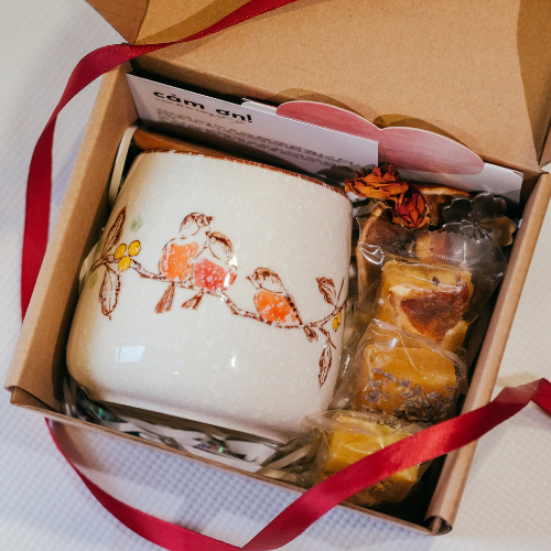 Bạn có thể kèm thêm túi trà, cà phê hoặc thiệp nhỏ để tạo điểm nhấn cá nhân.